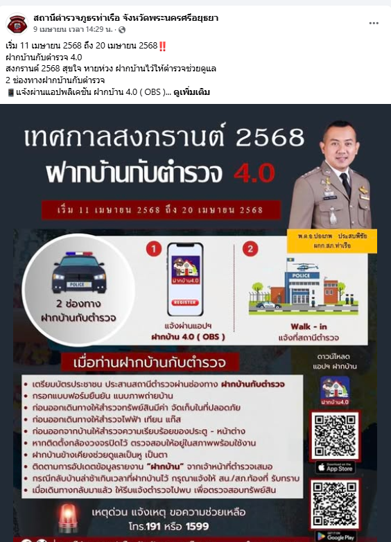 วันนี้ 5 มี.ค.68 (เวลา 09.00 น.) พ.ต.อ.ปองภพ ประสบพิชัย ผกก.สภ.ท่าเรือ , พ.ต.ต.สุพล งิ้วลาย สว.อก.สภ