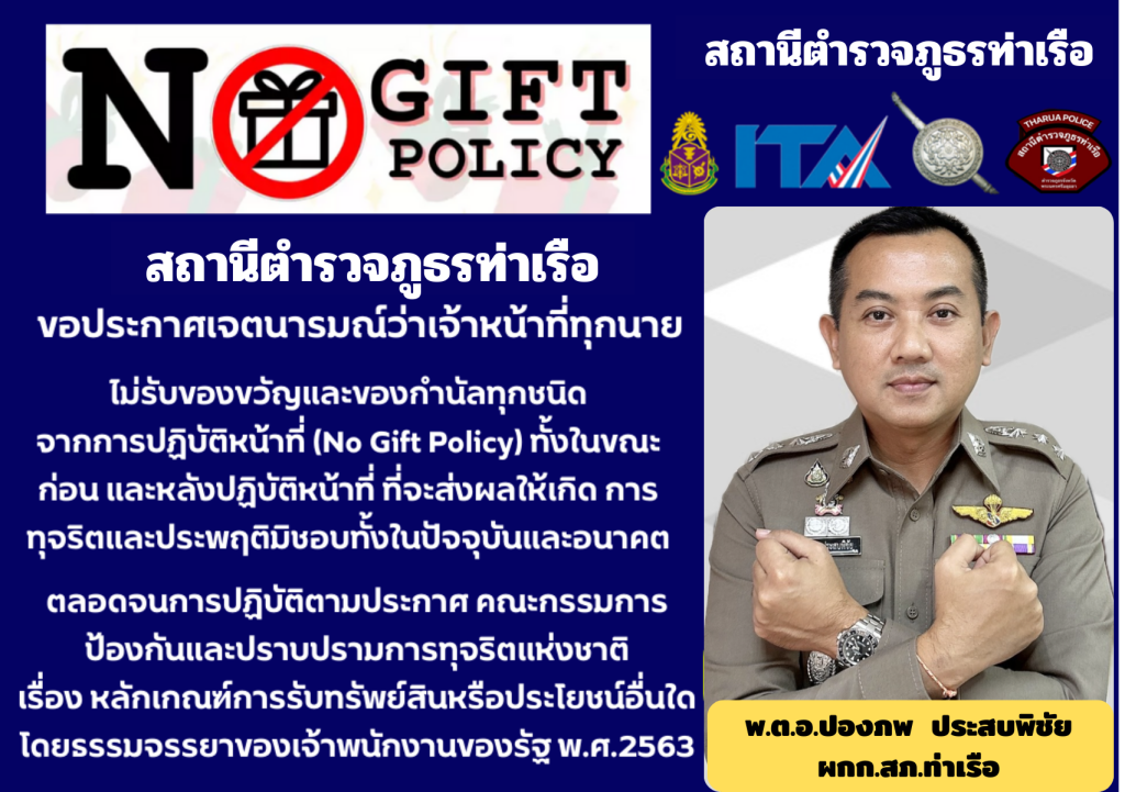 วันที่ 15 ม.ค.2568 พ.ต.อ.ปองภพ ประสบพิชัย ผกก.สภ.ท่าเรือ ประกาศเจตนารมณ์ของหน่วยงาน ประกาศเจตนาร