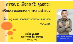 การมีส่วนร่วมของหัวหน้าสถานีตำรวจ จัดอบรมข้อการปฏิบัติตนของข้าราชการตำรวจเพื่อรักษา จริยธรรม และจรรยาบรรณตำรวจ