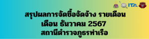 สรุปผลการจัดซื้อจัดจ้างจำแนกข้อมูลเป็น รายเดือน เดือน ธ.ค.67 ในรูปแบบไฟล์ PDF คลิ๊กที่นี่