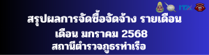 สรุปผลการจัดซื้อจัดจ้างจำแนกข้อมูลเป็น รายเดือน เดือน ม.ค.68 ในรูปแบบไฟล์ PDF คลิ๊กที่นี่