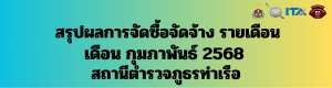 สรุปผลการจัดซื้อจัดจ้างจำแนกข้อมูลเป็น รายเดือน เดือน ก.พ.68 ในรูปแบบไฟล์ Excel คลิ๊กที่นี่