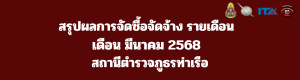 สรุปผลการจัดซื้อจัดจ้างจำแนกข้อมูลเป็น รายเดือน เดือน มี.ค.68 ในรูปแบบไฟล์ PDF คลิ๊กที่นี่