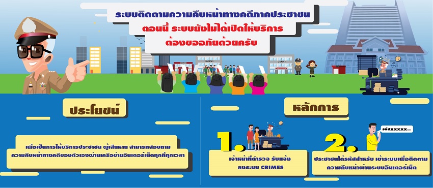 แสดงระบบบริการประชาชนผ่านอิเล็กทรอนิคส์ออนไลน์โดยเป็นการอำนวยความสะดวกให้แก่ประชาชนสำหรับบริการต่าง ๆ ของสถานีตำรวจ
